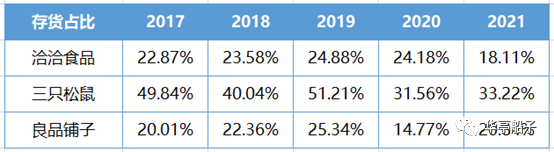 近五年来,洽洽食品的存货占比与良品铺子相近,远低于三只松鼠。