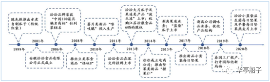 此后,公司不断丰富产品线,推出蓝袋系列风味瓜子、每日坚果小黄袋、益生菌每日坚果等热销产品,推动品牌知名度和美誉度不断提升,目前已经成为中国炒货行业的领导品牌。