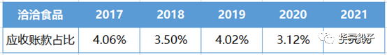公司的存货占比在2021年以前均在20%以上,2021年有所下滑,但仍高达18. 11%,同时公司的应收账款占比在3%~4%区间波动,存货周转率低于同行业的三只松鼠和良品铺子。综合来看,存在一定的爆雷风险。