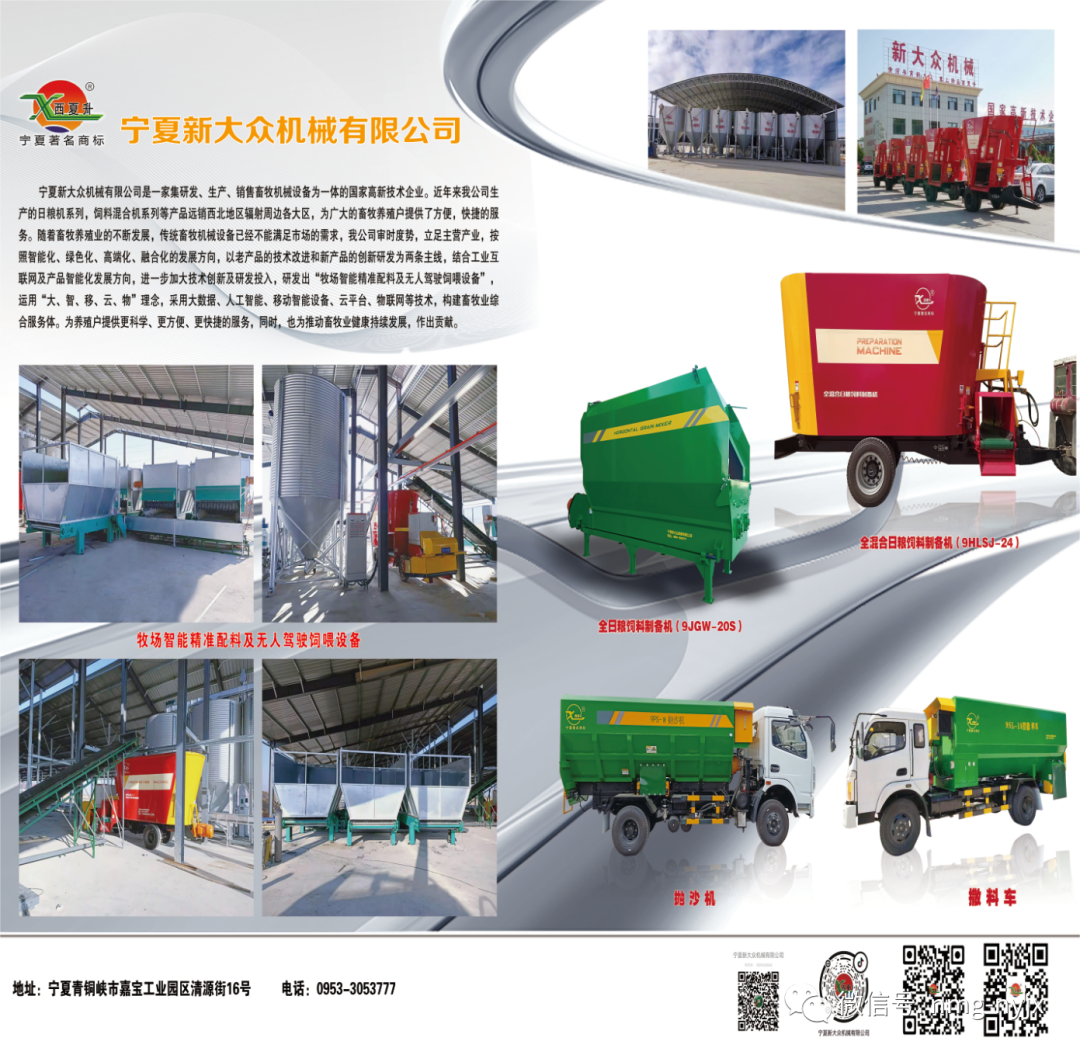 黄河孕育新大众,牧机精品西夏升!宁夏新大众机械有限公司成立于 2007 年 3 月,是一家以全混合日粮机等畜牧业饲料机械为主营产业的集产品研发、生产、销售及售后服务为一体的国家高新技术企业。公司坐落在有“塞上江南”之称的宁夏青铜峡工业园区嘉宝片区,占地面积 21000㎡,拥有各类加工及检测设备 100 多台(套)。公司现有员工150多名,工程师和专业技术人员30多名,技能技工90多名。新大众公司自成立以来,坚持持续改善,创新发展的思路和不懈努力,通过多年来的技术积累和沉淀,以优质的产品,合理的价格,过硬的产品质量,满意的售后服务,树立了良好的产品形象。