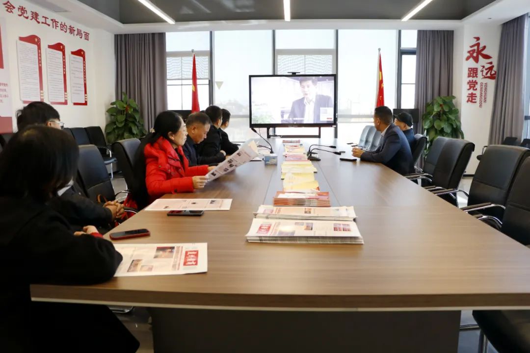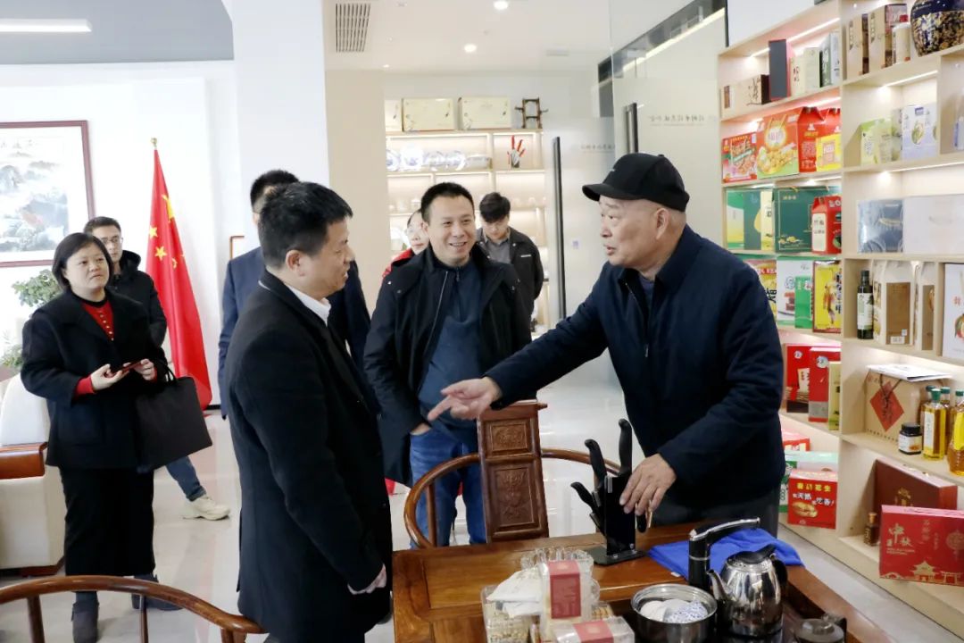 陈新带领方平一行参观了商会文化墙、党员活动室和展厅,并介绍了商会发展历程和近年来在服务会员发展、乡村振兴以及党建方面的工作情况。