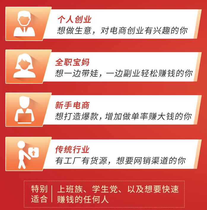 ✔至于大家说的没时间没货源没启动资金,更不是问题!“一件代发”,“碎片化时间办公”,没钱没货也可能赚得“盆满钵满”!