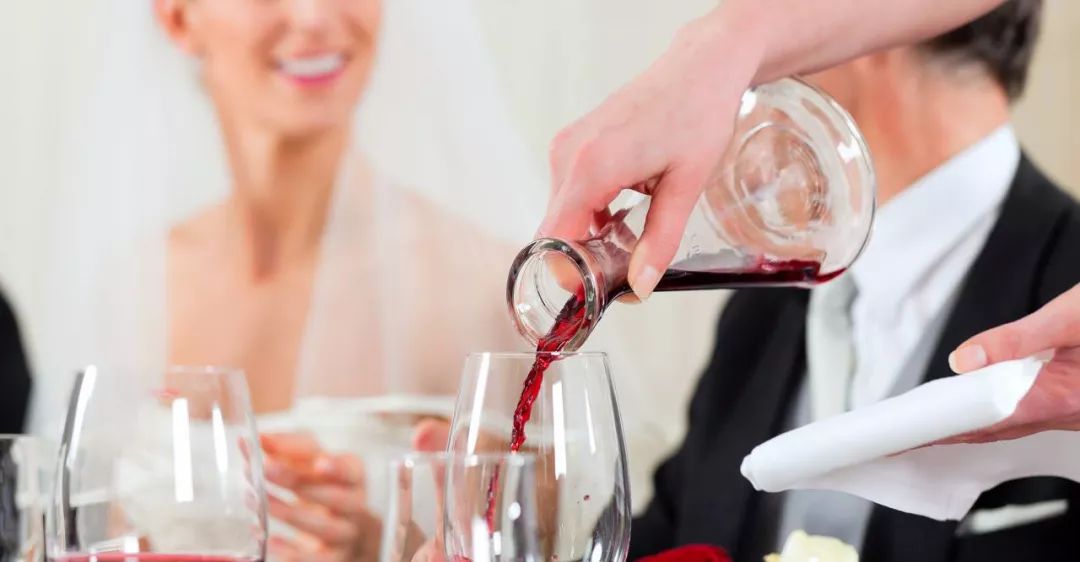 目前,在一些高档会所,服务人员在服务红葡萄酒时,基本都会提前开瓶将酒液倒入醒酒器中进行醒酒,并且在每位客人面前再放一个小的分酒器,最后再倒入酒杯中。