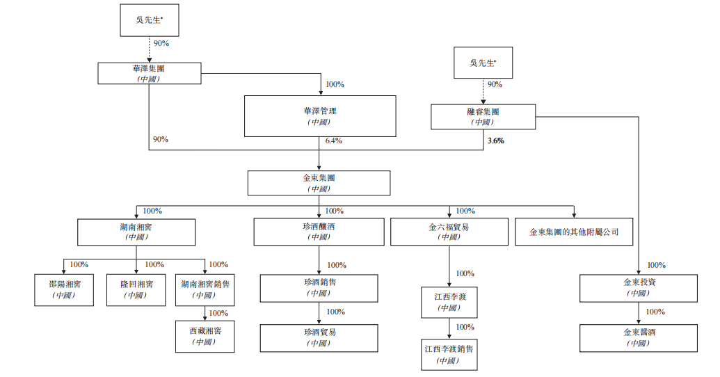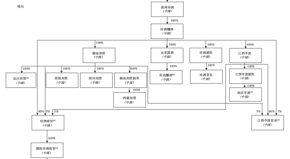 根据招股书披露的重组进程,金东集团旗下原有四大板块,分别为湖南湘窖、珍酒酿酒、金六福贸易和金东集团其他附属公司。其中,江西李渡由金六福贸易全资持股。
