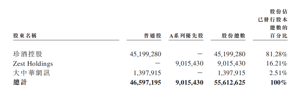 至此,珍酒控股、Zest Holdings、大中华网讯分别持股81.28%、16.21%和2.51%。