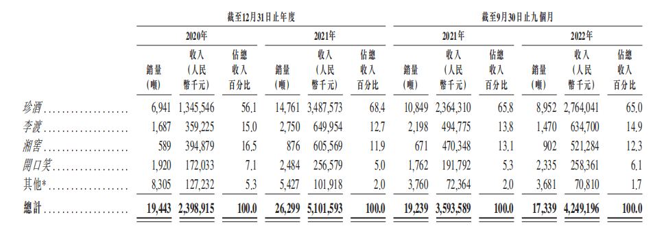招股书显示,珍酒李渡集团有限公司注册于开曼群岛,包括珍酒、李渡、湘窖以及开口笑四个品牌,产品主要针对次高端及以上级别的白酒市场。