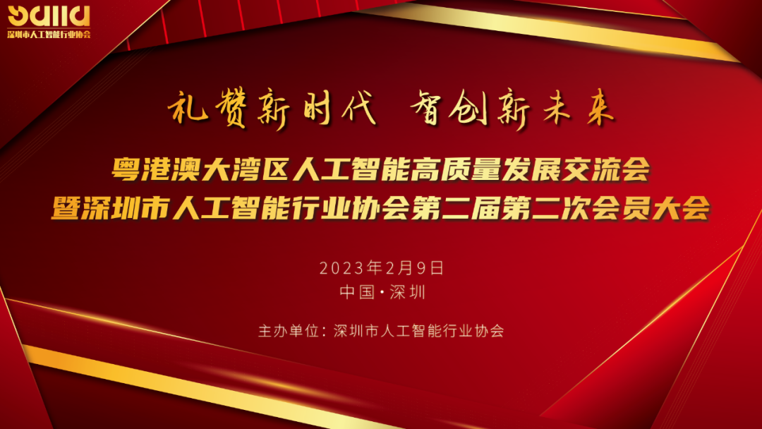2023年2月9日,粤港澳大湾区人工智能高质量发展交流会暨深圳市人工智能行业协会第二届第二次会员大会将在深圳盛大召开,围绕“礼赞新时代 智创新未来”主题,旨在邀请行业专家学者、国内外人工智能领军企业代表聚首,群贤毕至,同觞共咏,共谋人工智能发展蓝图。