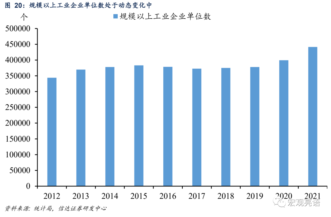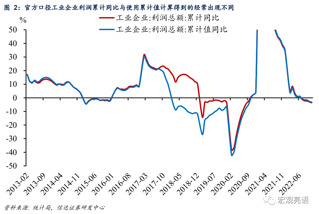工业企业的经营状况并非一成不变,而是处于动态的变化之中。因此,依据年主营业务收入2000万元的标准,每年规模以上企业的样本库都会发生一定的变化。具体来说,有些企业过去虽然不在样本库里,但上一年度的主营业务收入超过2000万元,则下一年度就会纳入统计;有些企业在上一年度虽然是样本库企业,但当年的企业主营业务收入低于2000万元,甚至是关停破产,则在下一年度就会被剔除出样本库。在这一动态调整机制的作用下,每年有部分企业达到规模标准纳入调查范围,也有部分企业因规模较小而退出调查范围,还有新建投产企业、注(吊)销企业等变化。除此之外,“规模以上工业”的划分标准也经历过数次调整。1998-2006年,“规模以上工业”是指全部国有和年主营业务收入≥500万元的非国有工业法人单位。2007-2010年,是指年主营业务收入≥500万元的工业法人单位。2011年至今,范围调整为主营业务收入≥2000万元的工业法人单位。“规模以上工业”统计口径每年出现变化也意味着如果用不同时期的工业企业利润数据(绝对值)计算增速,会出现统计口径不可比的问题。为此,国家统计局会要求进入样本库的企业在报送当期数据的同时,也要上报上一年度的同期数据,以便进行汇总比较,并进行“可比口径的增长率”的计算。考虑到存在数据可比性的问题,工业企业利润同比不可单纯用每期公布的绝对值进行计算。从历史数据可以看到,2013年以来官方口径工业企业利润累计同比与使用累计值计算得到的经常出现不同,尤其是2018年-2019年期间差距相当大。对于2018-2019年工业利润数据差异,统计局给出了三点解释。(一)加强统计执法,国家统计局对不符合规模以上工业统计要求的企业进行了剔除。(二)加强数据质量管理,剔除跨地区、跨行业重复统计数据。根据国家统计局最新开展的企业组织结构调查情况,2017年四季度开始,对企业集团(公司)跨地区、跨行业重复计算进行了剔重。(三)“营改增”政策实施后,服务业企业改交增值税且税率较低,工业企业逐步将内部非工业生产经营活动剥离,转向服务业,使工业企业财务数据有所减小。(一)三因素框架的理论基础