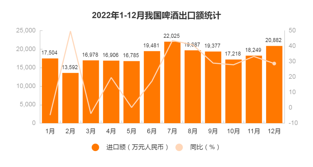 2022全年中国啤酒进出口数据出炉,贸易逆差规模进一步缩小
