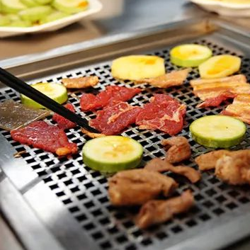 于是用筷子夹起了金属上滋滋冒油的五花肉