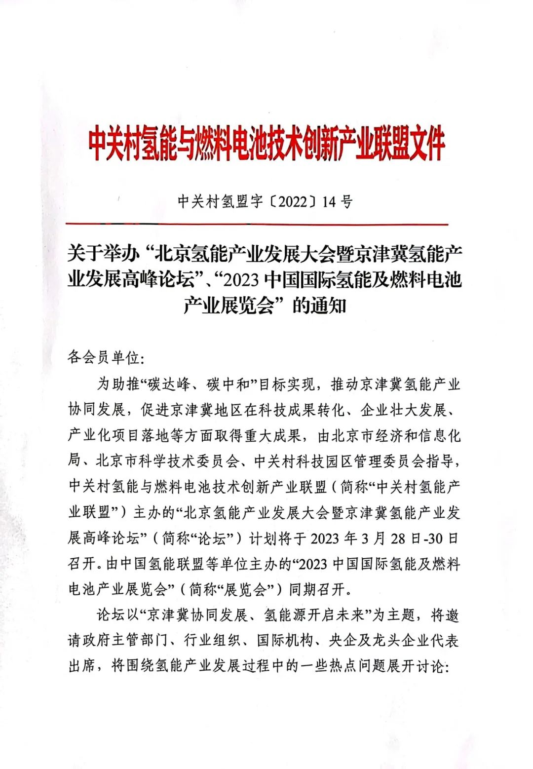 为助推“碳达峰、碳中和”目标实现,推动京津冀氢能产业协同发展,促进京津冀地区在科技成果转化、企业壮大发展、产业化项目落地等方面取得重大成果,由北京市经济和信息化局、北京市科学技术委员会、中关村科技园区管理委员会指导,中关村氢能与燃料电池技术创新产业联盟(简称“中关村氢能产业联盟”)主办的“北京氢能产业发展大会暨京津冀氢能产业发展高峰论坛”(简称“论坛”)计划将于2023年3月28日-30日召开。