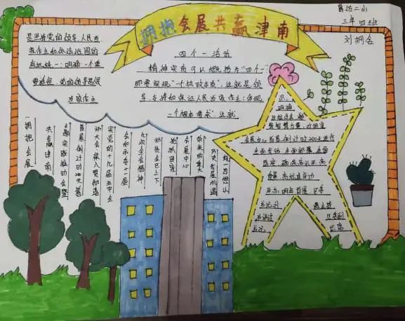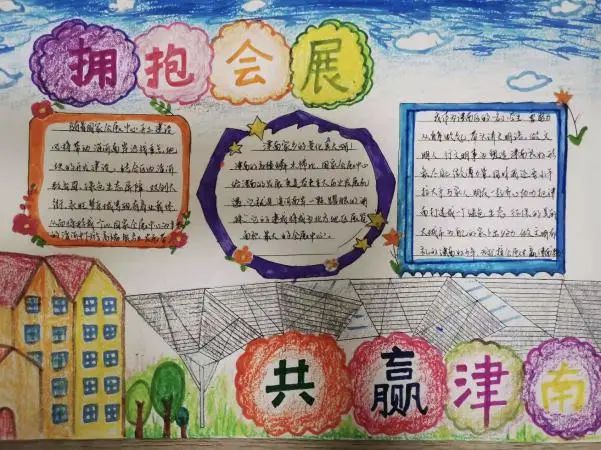 学生和家长通过丰富多彩的手抄报,展现了家乡日新月异的变化,绘制了对国家会展中心的期待以及对新征程的憧憬,号召广大家庭以热情的态度和崭新的风貌迎接会展。