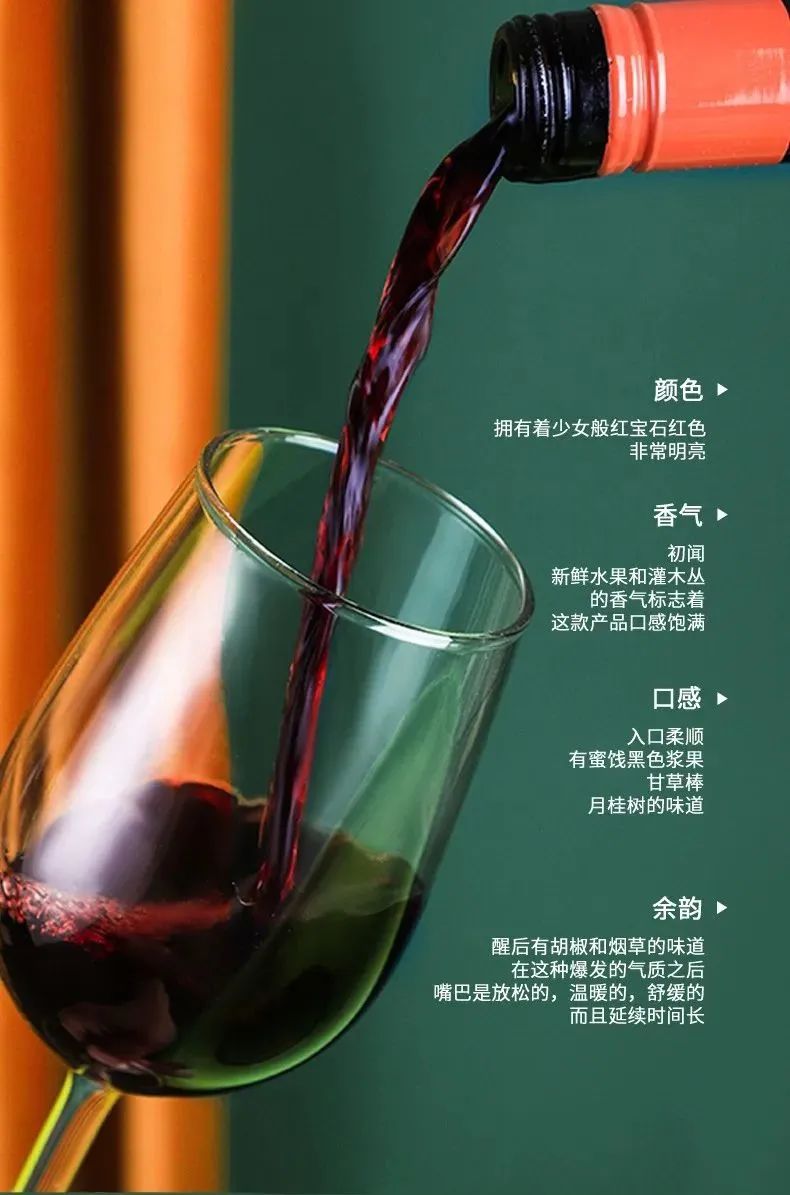 和别的葡萄酒不一样,这些气泡为酒体增加了更饱满的口感;品上一口,口感柔顺,丰富的果香,充盈在口腔,冲撞着每一个味蕾,持久地回荡在舌尖和喉腔。