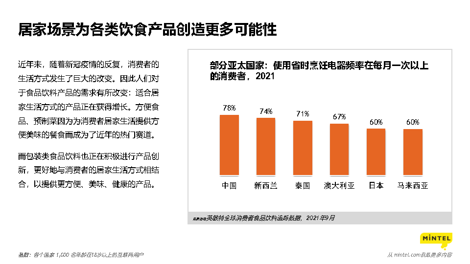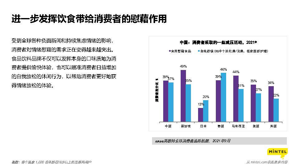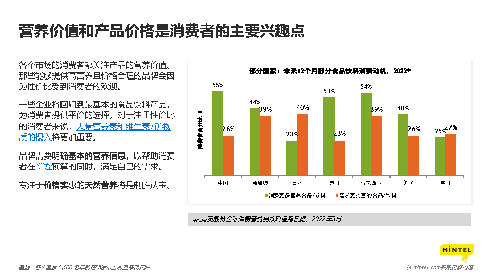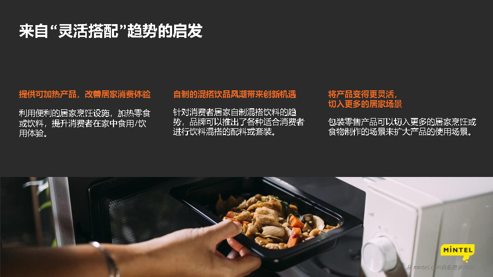 报告显示,在面对日益增加的经济压力的情况下,部分消费者将会逐渐回归到基础的食品饮料产品。更好地与消费者的居家生活方式相结合,以提供更方便、美味、健康的产品。以美味为特点的食品饮料产品在经济衰退时期将会更加成为人们在艰难时期的必需品。如何给产品所传达信息进行精简,并有效传达,成为品牌需要关注的要点。强化消费者的工作、家庭和娱乐心理状态。太空研究将为人们食品科技创新的可能性。对消费者和企业而言,更审慎、节约地使用水资源将成为重要事项。食品饮料能够帮助消费者极端气候或灾难性天气事件。