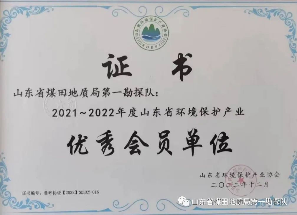 近日,我队荣获山东省环境保护产业协会“2022年度优秀会员单位”的称号,我队已连续三年获得此项荣誉。