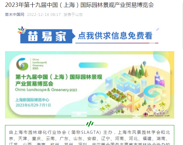 LandscapeExpo∣上海园林景观展 关注微信,掌握展会实时资讯 点击“阅读原文”访问官网 电话:+86-21-54650626/54650629/54650621