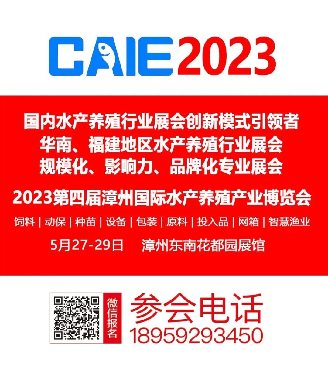 第4届中国漳州国际水产养殖产业博览会(CAIE闽南站)将于2023年5月27日-29日在漳州东南花都园展馆举办。CAIE闽南站是水产饲料、种苗、动保(投入品)、养殖设备、智慧渔业等于一体的全国性专业展会,历经5年的发展与沉淀,成为国内水产养殖相关科研高效专家分享新技术、新成果交流学习平台、渔需用品一站式采购平台、以及相关企业展示品牌、发布新品、贸易合作的最佳平台。
