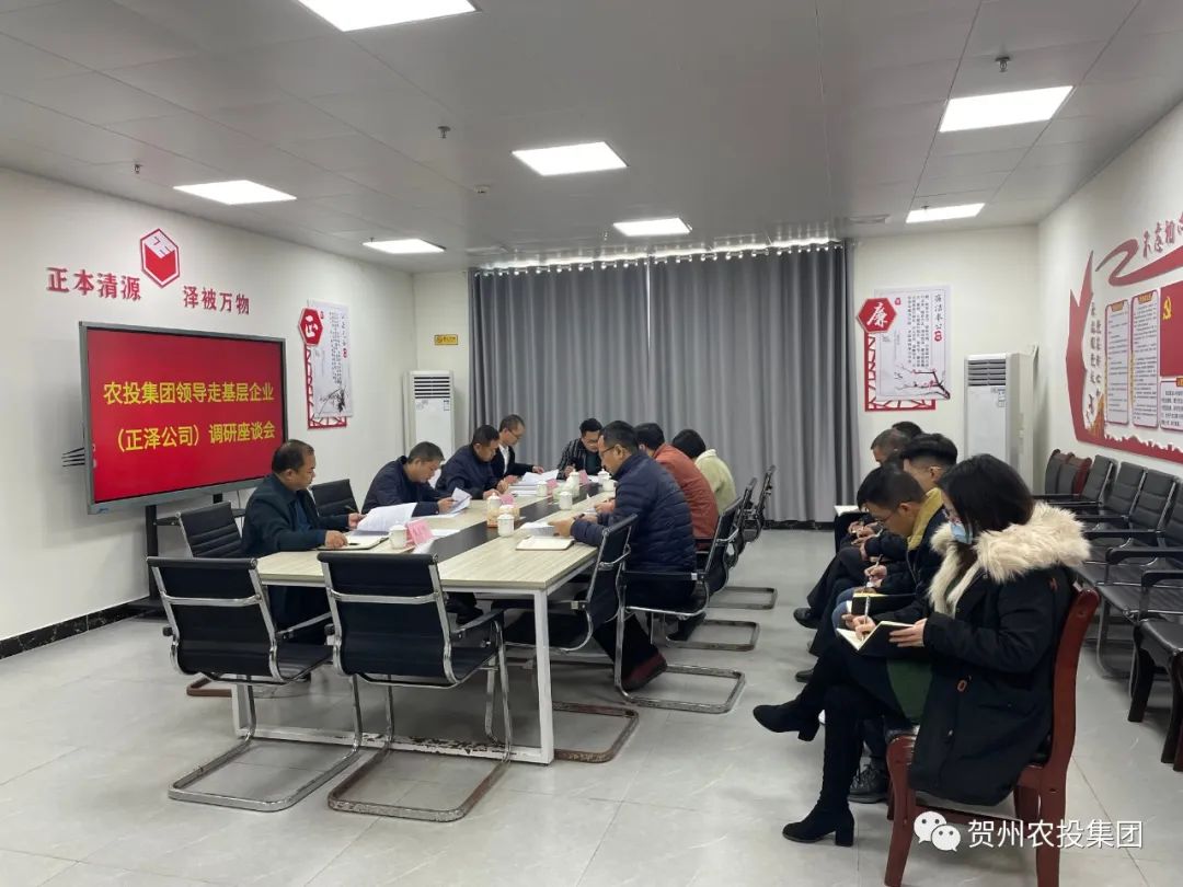 2023年1月31日,市农投集团党委副书记、总经理刘文剑带队到下属公司正泽公司开展调研座谈,并详细了解正泽公司节后的生产情况、当前存在的问题和困难,以及新一年计划打算。集团副总经理高庆陪同调研。