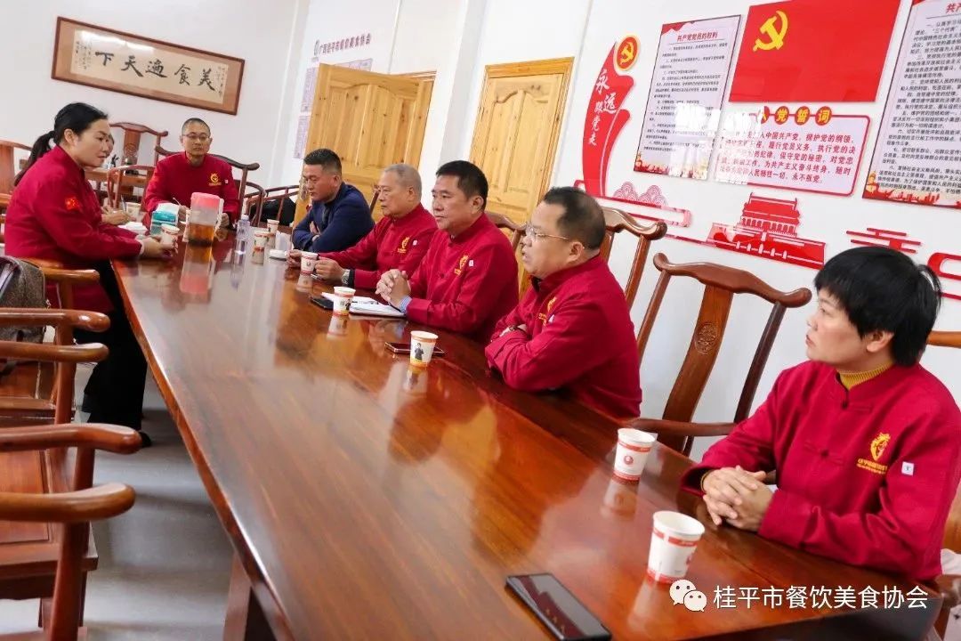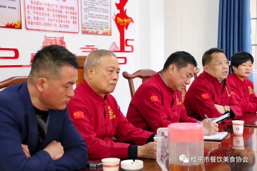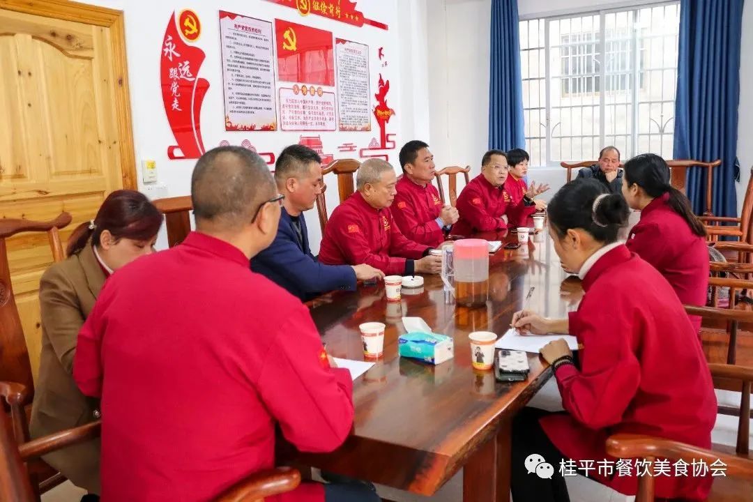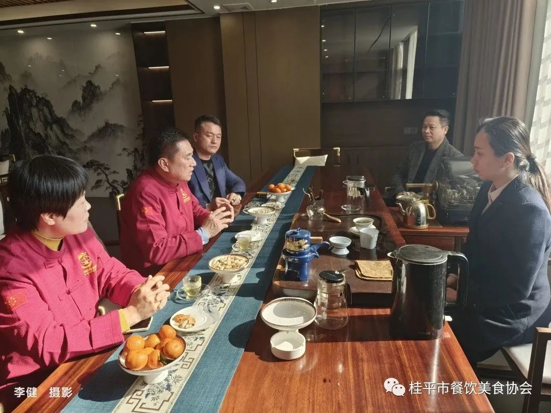 2023年1月31日上午,桂平市餐饮美食协会在协会办公室召开常务会议。会议主要内容:①对2023年近期工作发展进行规划部署;②走访餐协企业单位送去新春祝福及调研餐饮行业经济复苏情况。参与本次调研活动的人员有:桂平市餐饮美食协会会长、紫荆镇荆山人家农庄李永成董事长,桂平市餐饮美食协会常务副会长、大千烧鹅喜宴店董事长刘华富,桂平市餐饮美食协会常务副会长、悦府盛宴酒楼总经理陈家平,桂平市餐饮美食协会常务副会长、跑腿快车公司董事长刘荣,桂平市餐饮美食协会常务副会长、紫荆农家菜•山南美食馆总经理陈月兰,桂平市餐饮美食协会常务副会长兼秘书长李健,桂平市餐饮美食协会常务副会长、绿玫瑰中西餐厅总经理潘健,重庆人家餐馆总经理、桂平市餐饮美食协会副秘书长王凤宇。