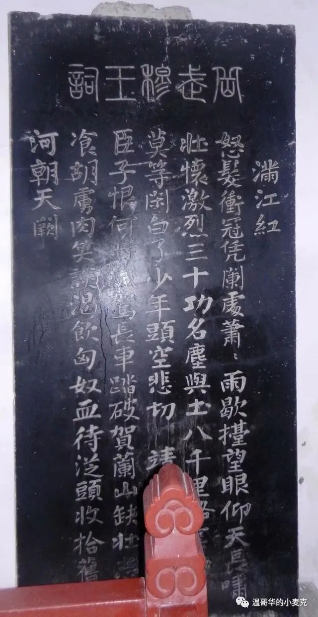 无独有偶,明朝弘治年间,浙江镇守太监麦秀将《满江红》刻于杭州西湖岳王庙碑上,从此基本奠定了今天的通行版基础,特别是和汤阴岳王庙版本唯一不同的是,这一版本结尾为“朝天阙”,可以说已经和现在教材上的内容一模一样。