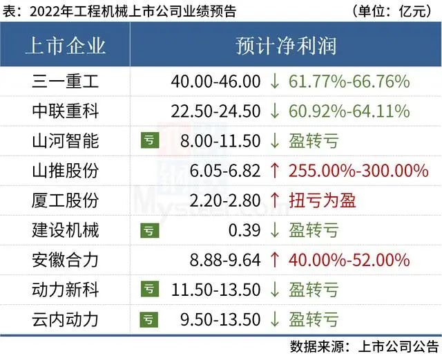 据不完全统计,截至2023年1月31日,已有9家工程机械上市公司公布2022年业绩预告。