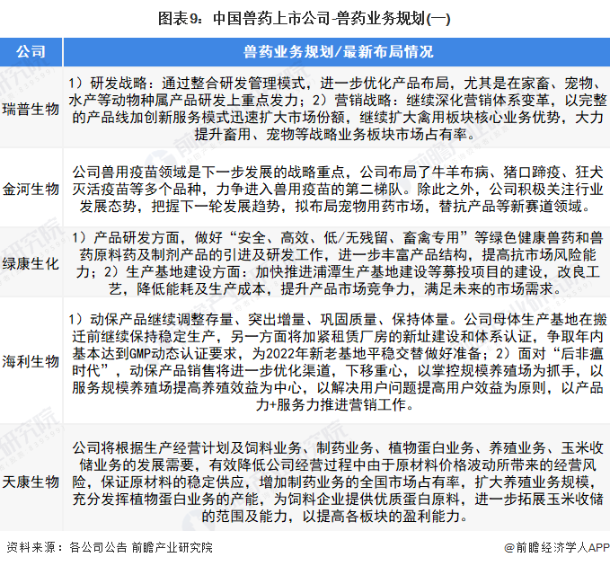 近些年国家兽药行业支持性政策频出的背景下,我国兽药上市公司也相应提出了业务规划。其中大多数公司对新产品创新、加大研发、布局宠物领域等方面做出规划: