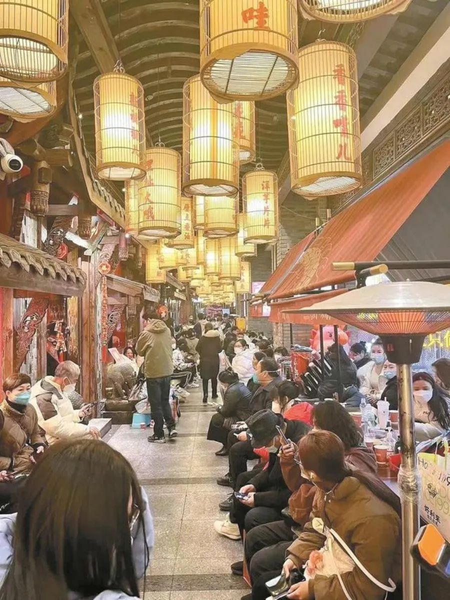 各大餐饮门店客流提升,大龙燚、蜀大侠、大妙、小龙坎等火锅店再现超长排队场景,营业收入大幅回升。门店外的人流展现出红火的年节氛围,甚至有些队伍排至百米有余。