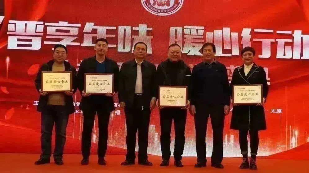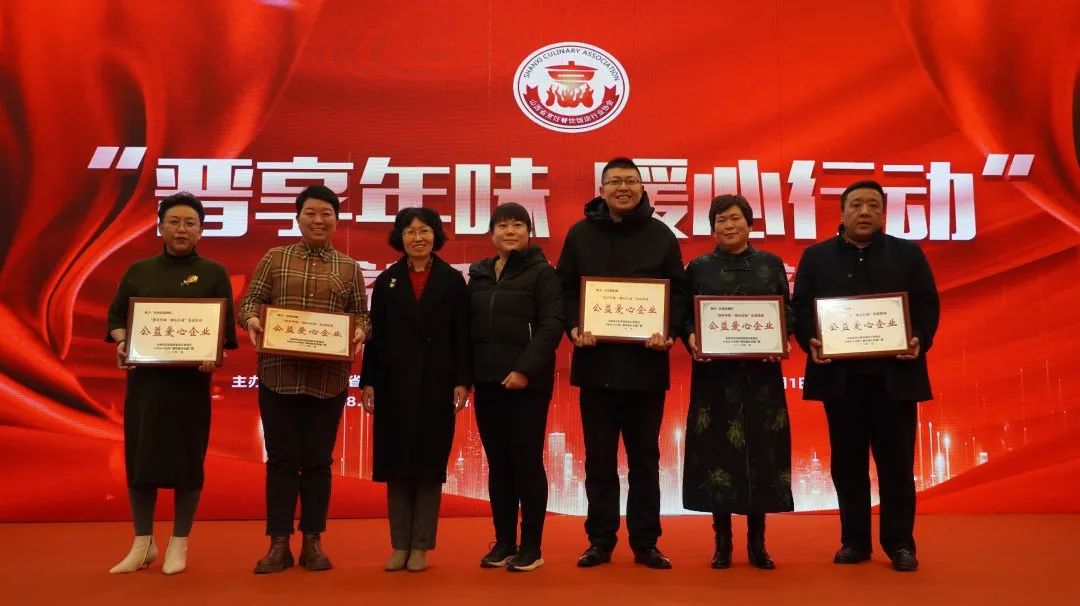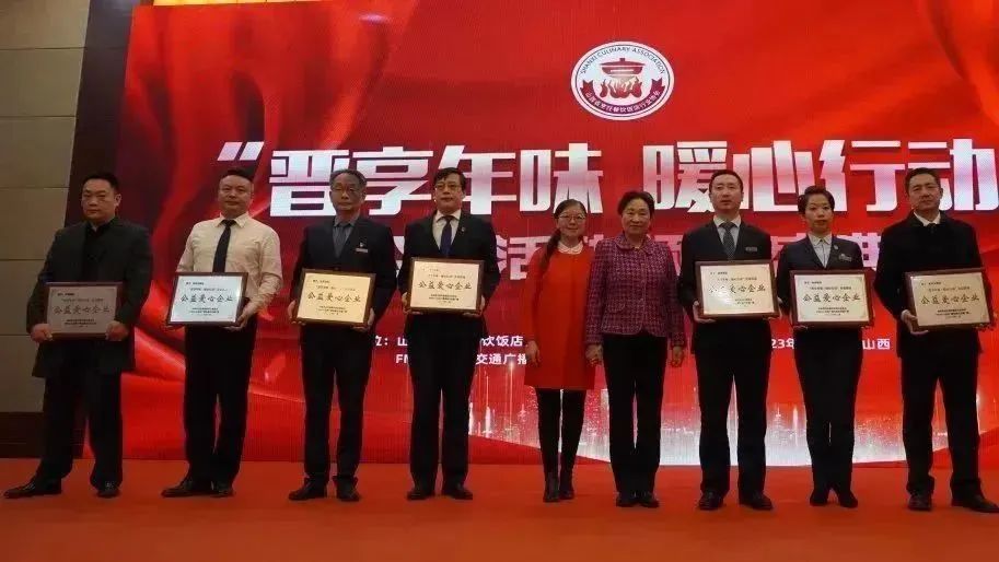 团拜会上,协会领导和特邀嘉宾为参加2023“晋享年味·暖心行动”的23家餐饮饭店品牌企业:迎泽宾馆、丽华大酒店、山西饭店、梧桐公寓酒店、并州饭店、国贸大饭店、西山大厦、汾西富格酒店、太重宾馆、天星海归海、江南大酒店、芙蓉酒楼、山西会馆、晋韵楼大酒店、百姓渔村、海广海世界、顺溜削面、晋美大掌柜、合生酒店、晋阳故事、认一力(南中环店)、晋阳王羊汤、晋阳古镇颁发“公益爱心企业”荣誉牌匾。