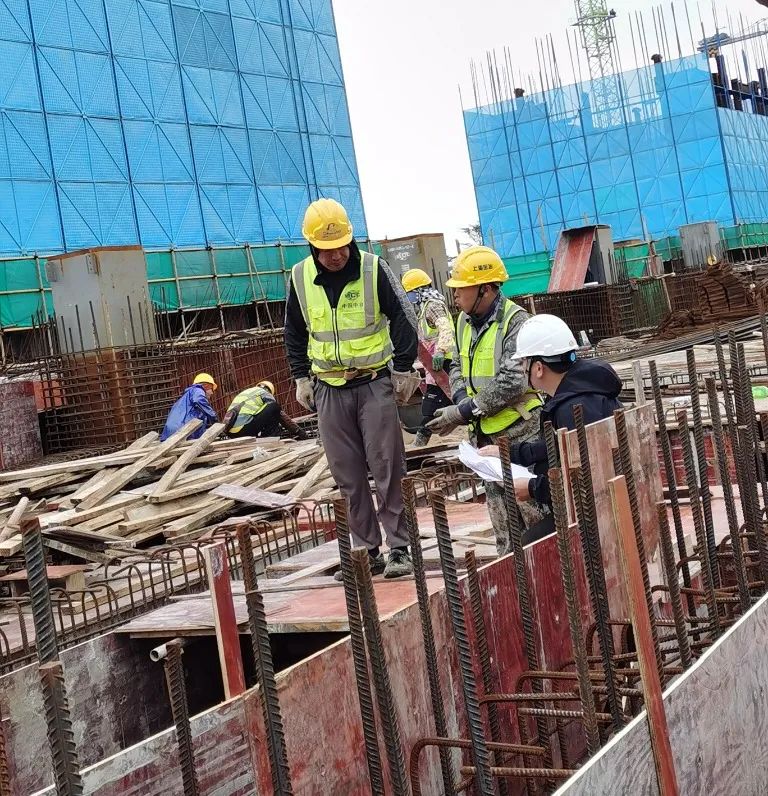 在项目工地,一场场碰头会、施工会不间断,保障春节期间项目在落实安全施工管理的前提下,建设进度稳步推进。在施工现场可以看到,虽天降小雨,但仍是一派火热景象,建设者们正马不停蹄进行施工作业。