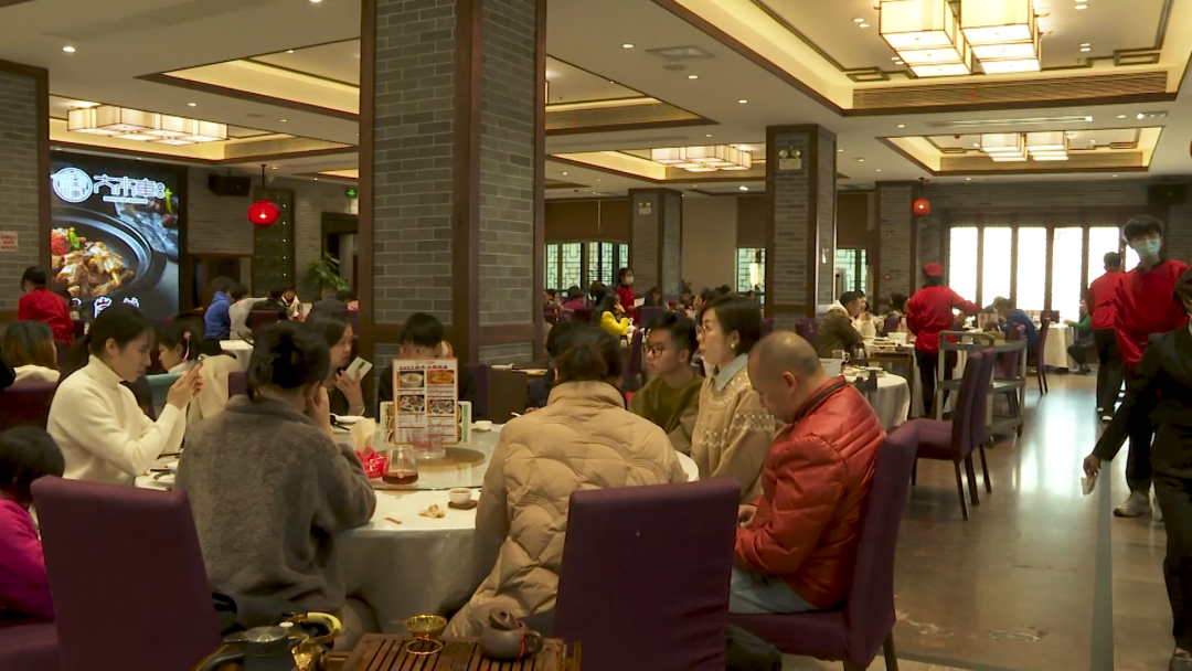 来到禄福山庄,餐饮大厅同样是座无虚席。据负责人介绍,春节期间,年夜饭、茶市、午市、晚市都出现了爆满的情况。