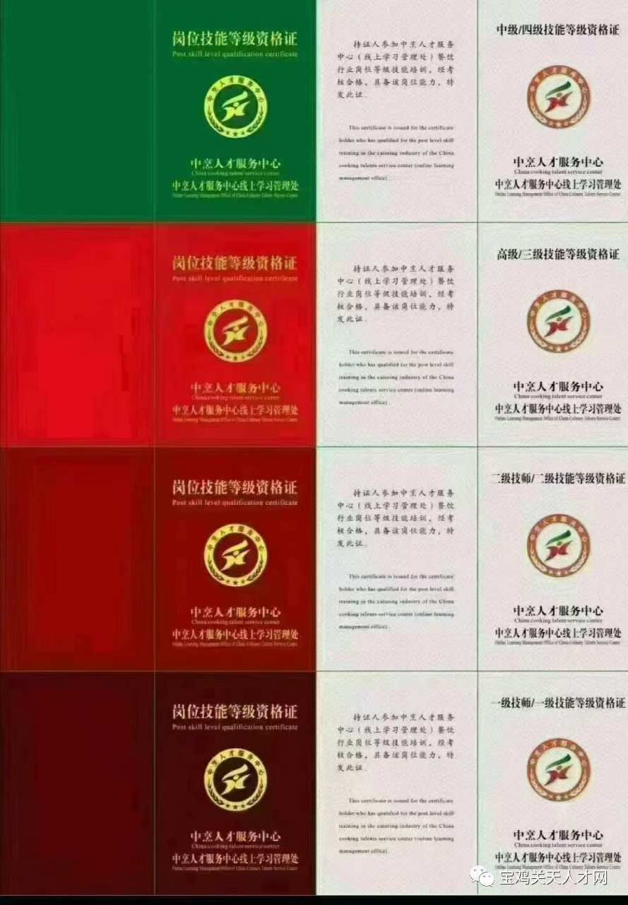 中烹人才服务中心《餐饮业服务师,酒店业行政总厨,厨政管理师,食品雕刻师,面点师,烤馕师,餐饮业服务培训师,酒店业厨师长等》
