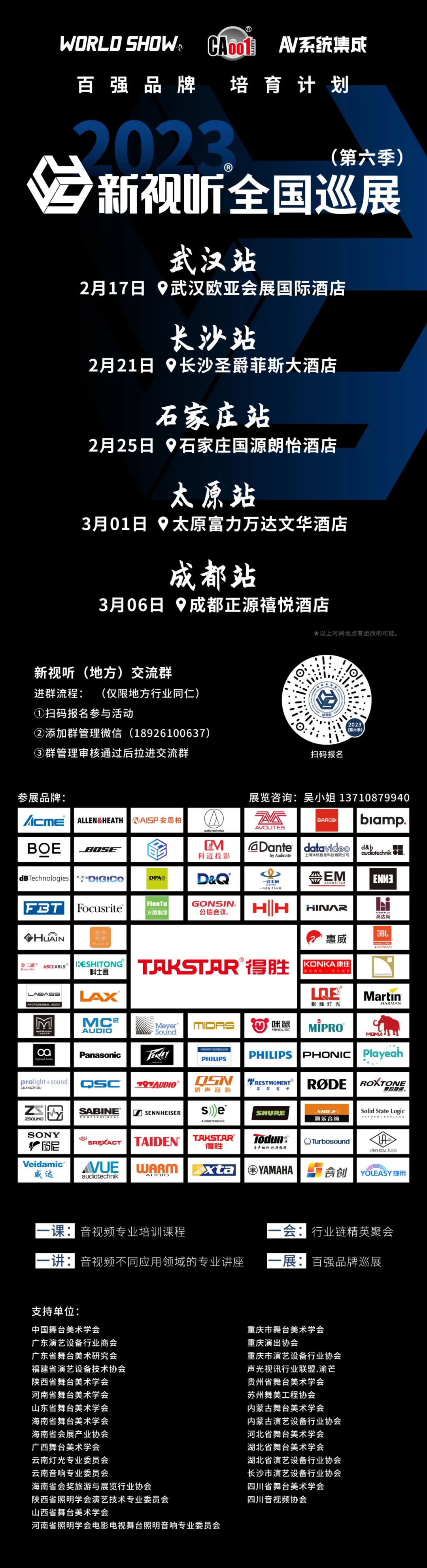 2023年,新视听全国巡展(第六季)再次启航!得胜即将在2月17日、2月21日、2月25日、3月1日、3月6日同步新视听全国巡展第六季抵达武汉、长沙、石家庄、太原、成都五城。