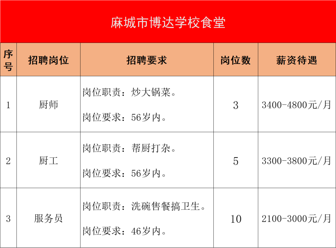 博达学校后勤部食堂现有幼儿园、小学初中、高中3个食堂,职工120余人,每月准时发工资。学校配备有员工宿舍,包吃包住,每月休息2-4天,寒暑假值班,免费为员工办理意外伤害保险,可购买五险,享受节假日福利,享受教职工子女就读优惠。
