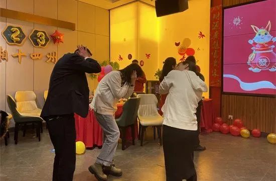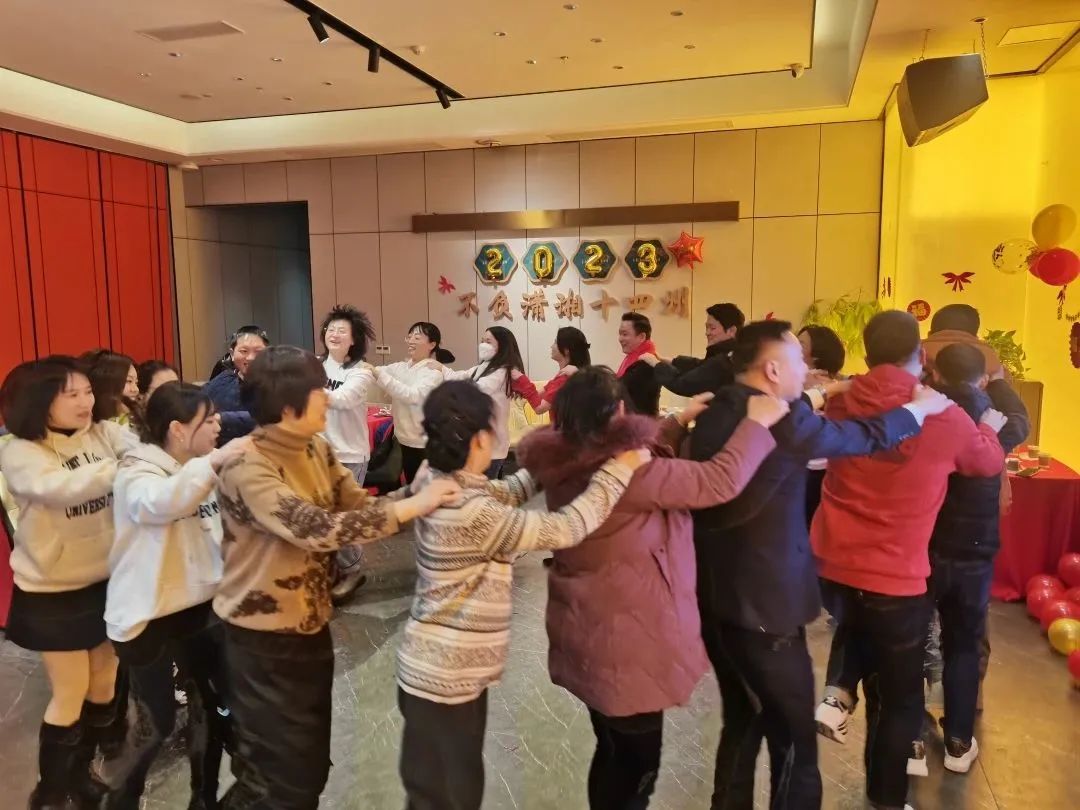 全体员工参与的“兔子舞”将联欢会气氛推向高潮。