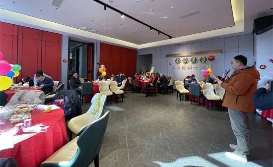 1月18日下午,长沙理程餐饮有限公司在麓山肴浏阳河主题店举行2022年新春联欢会。长沙理程商业投资有限公司党委委员、监事会主席、工会主席陈海强出席会议,理程餐饮全员及麓山肴门店代表,退休老领导欢聚一堂,共迎新春。