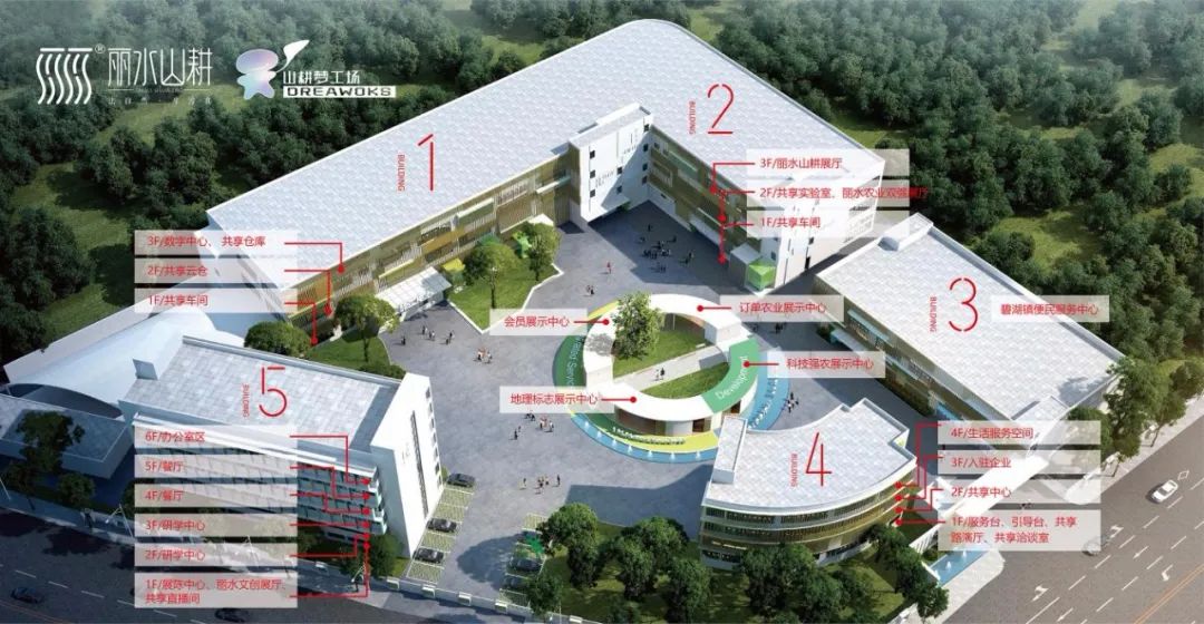 创新服务综合体由市农投公司具体运营,以“一核心十平台十体系”为大纲,形成以“丽水山耕”区域公用品牌为引领、山耕梦工场为核心、县域服务中心为延伸的发展共同体。核心位于莲都区碧湖镇,配置生鲜配送中心、农产品电商中心、共享检测中心、共享云仓及加工车间等,整合产业链上下游资源提供仓储、物流、文创、检测、科技等多元服务,以“公益性+市场化”实现资源共通、设施共享、价值共创。