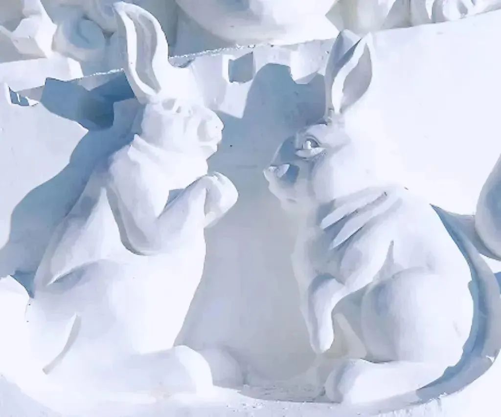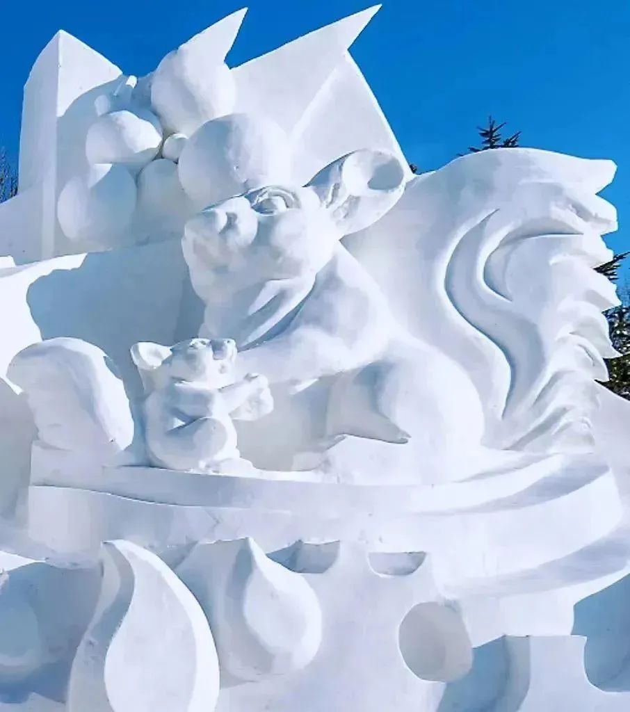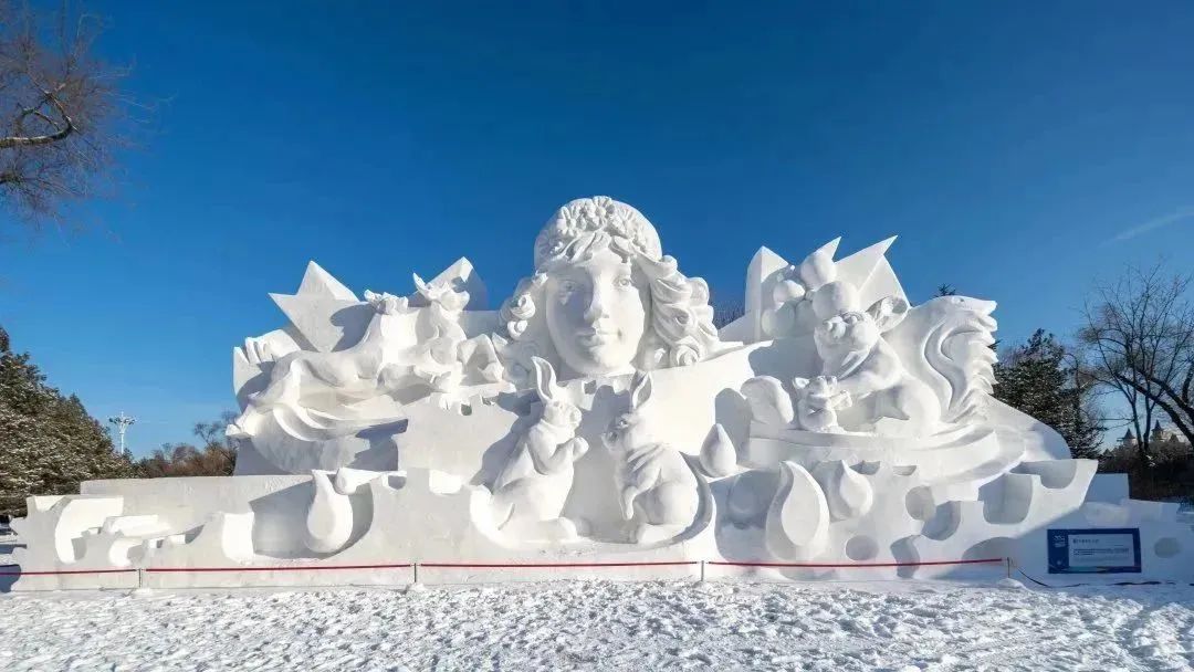 当雪雕融入艺术,名画《母与子》现身太阳岛雪博会