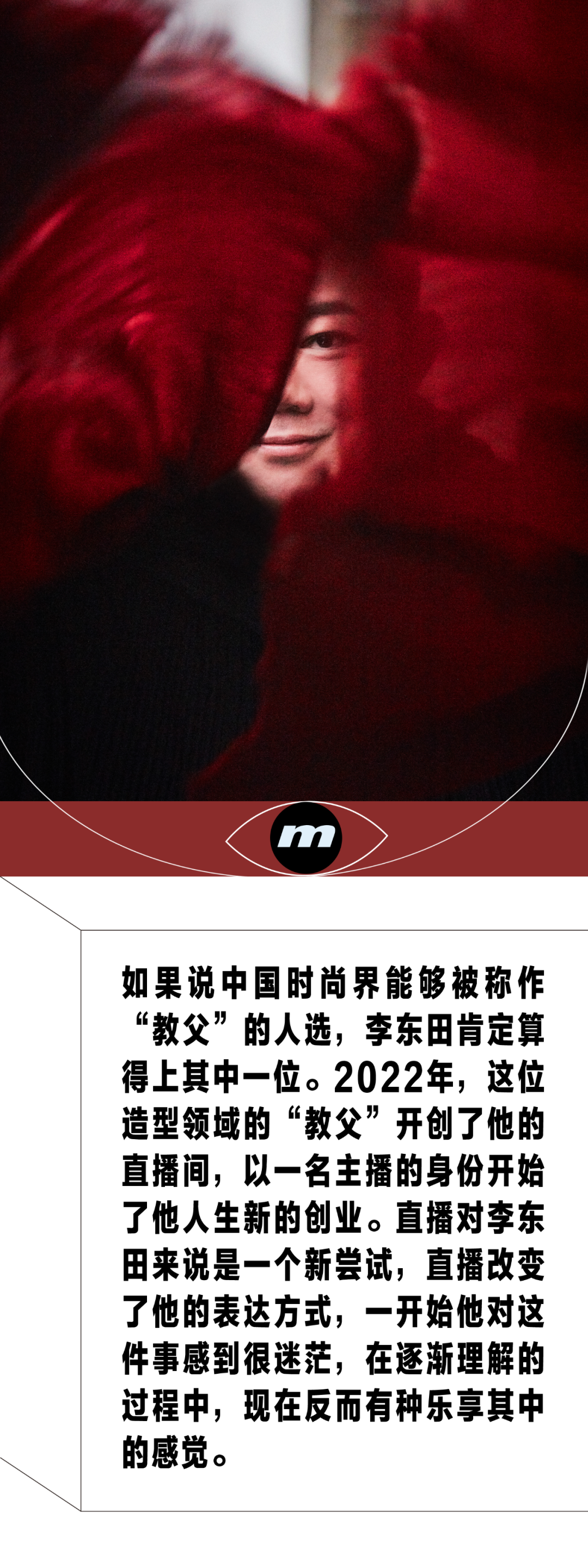 他是隐在荧幕背后,见证、参与、推动了中国时尚圈发展的大腕儿。从巩俐、王菲、章子怡到周迅、李冰冰、杨幂……近20年来几乎所有的中国一线明星都和李东田合作过,主持人李静甚至调侃道,说他一双手摸过中国所有名女人的脸。作为中国时尚视觉发展的参与者、指引者,在时尚纸媒最辉煌的20年里,共同撑起这段黄金时代。