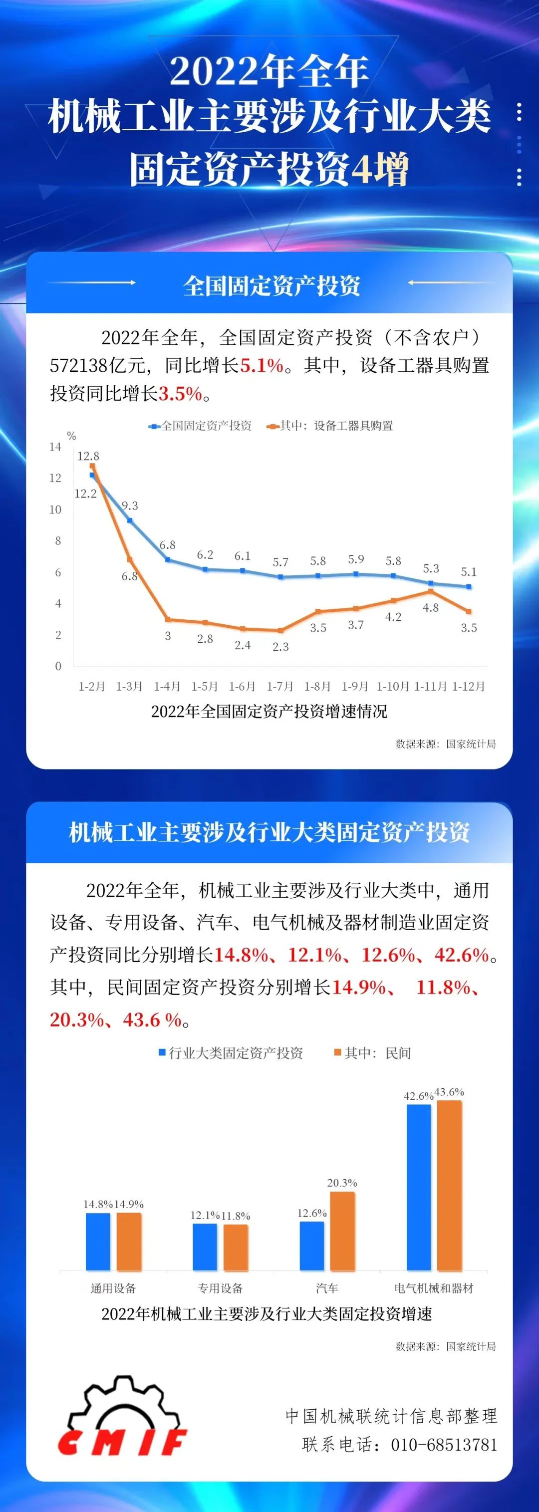 2022年全年机械工业主要涉及行业大类固定资产投资4增