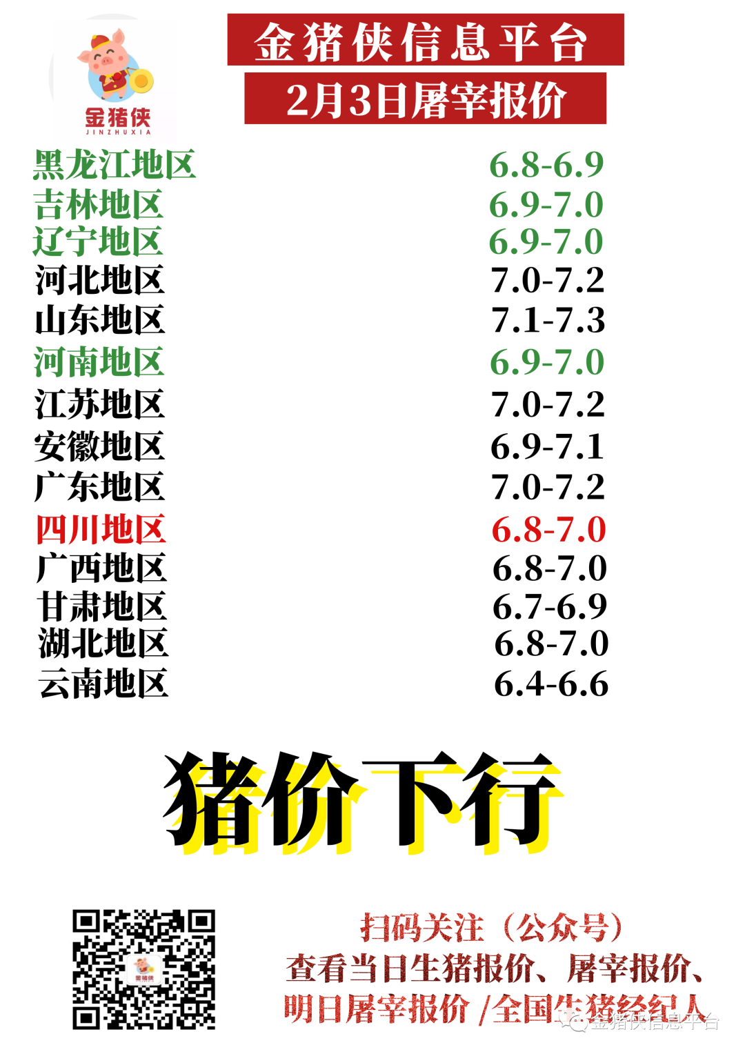 【金猪侠】2月3日屠宰企业收购价~【猪价下行】