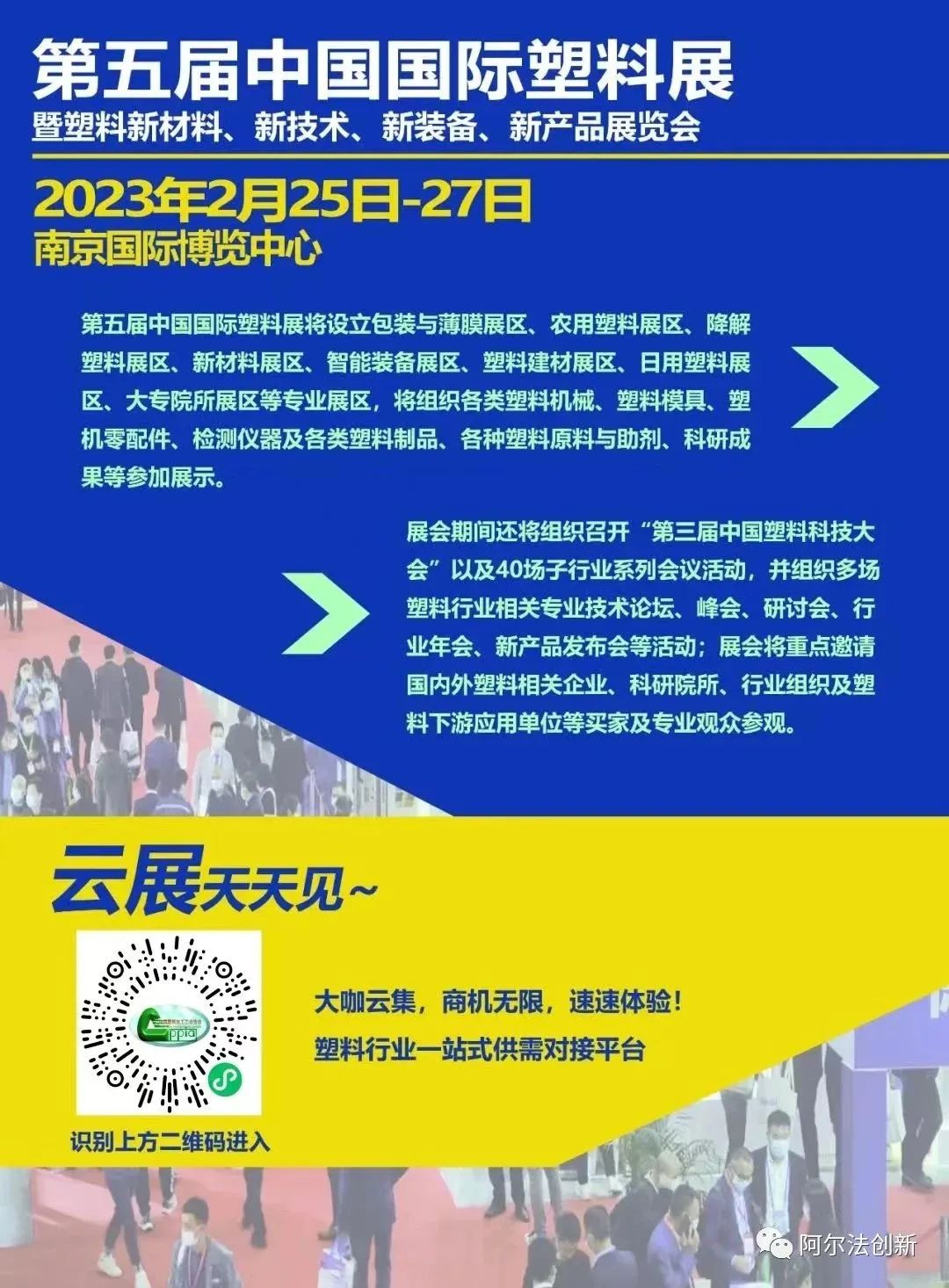 第五届中国国际塑料展举办时间确定在2023年2月25——27日,地点仍为南京国际博览中心。