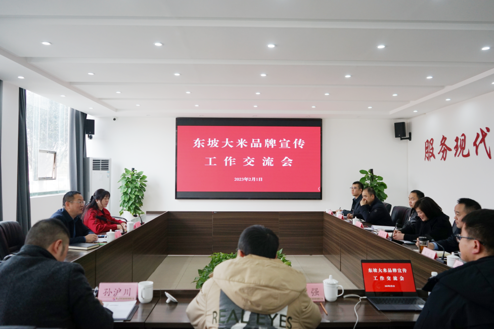 会议第一阶段,公司与市农业农村局对东坡大米品牌宣传进行深入交流。公司围绕东坡大米商标注册、品牌推广、生产营销工作情况及下一步计划进行详细汇报,双方观看了东坡大米宣传片。徐彬对市农投公司东坡大米品牌推广工作表示肯定并提出相关建议,表示将全力支持农投公司做好东坡大米品牌推广工作。