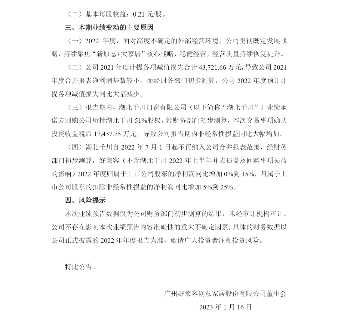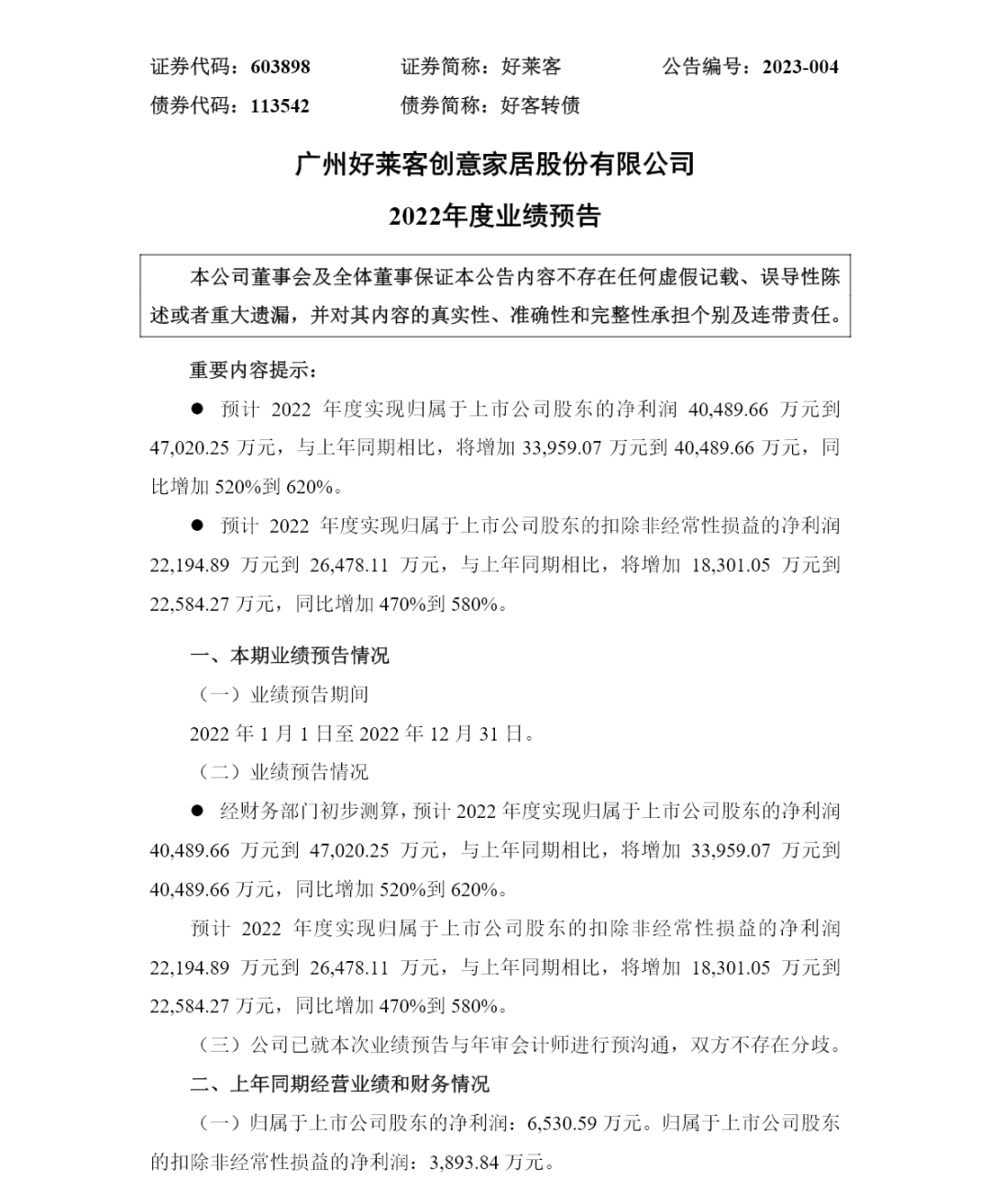3、好莱客预计2022年净利最高增620%到4.7亿元