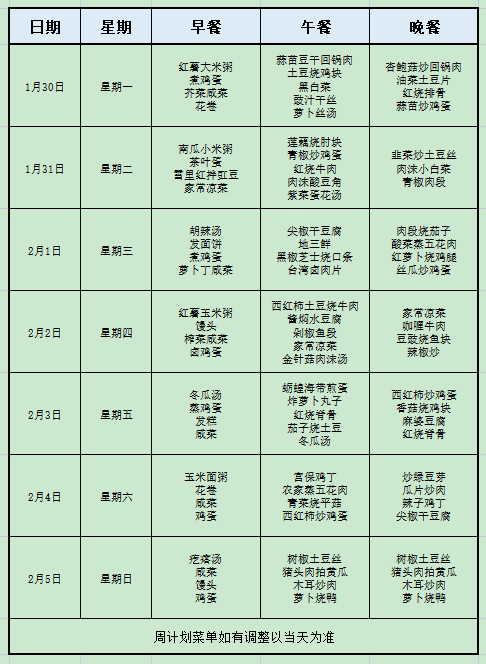 【工会为您晒食谱】哈热公司食堂1月30日-2月5日食谱