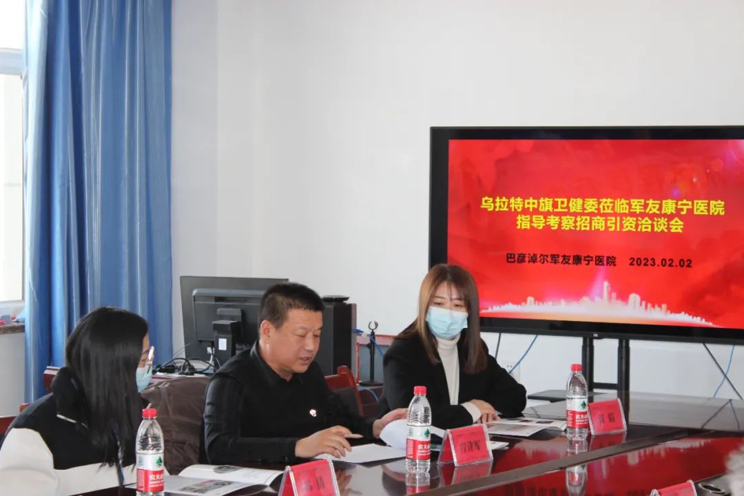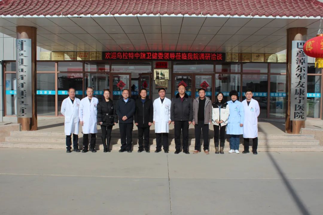 2023年2月2日,乌拉特中旗卫健委何书记一行与巴彦淖尔市精神卫生项目办总执行主任刘健莅临我院指导考察,同时对我院康复中心进行参观。随后在我院召开招商引资洽谈会。