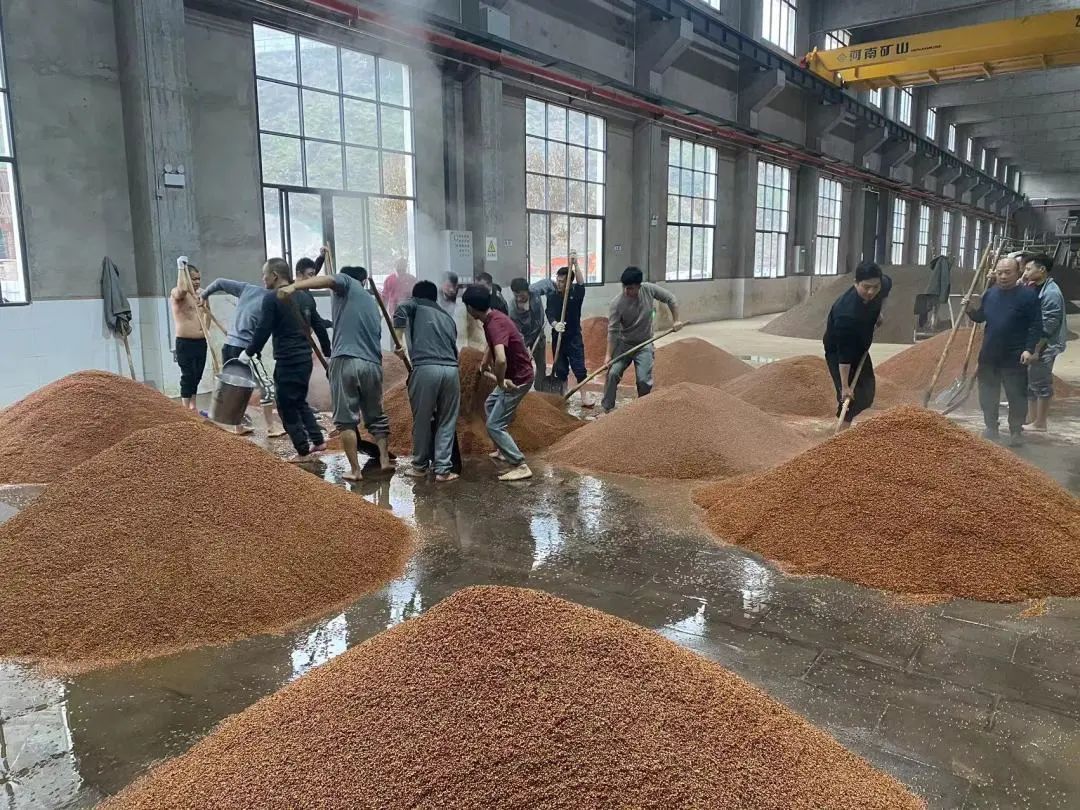 也是茅台酒三大原料一-高粱、小麦、水在酿造过程中的首次相遇,下沙投入全年所用高粱总量的50%。