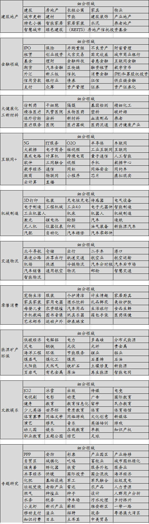 附报告覆盖行业范畴