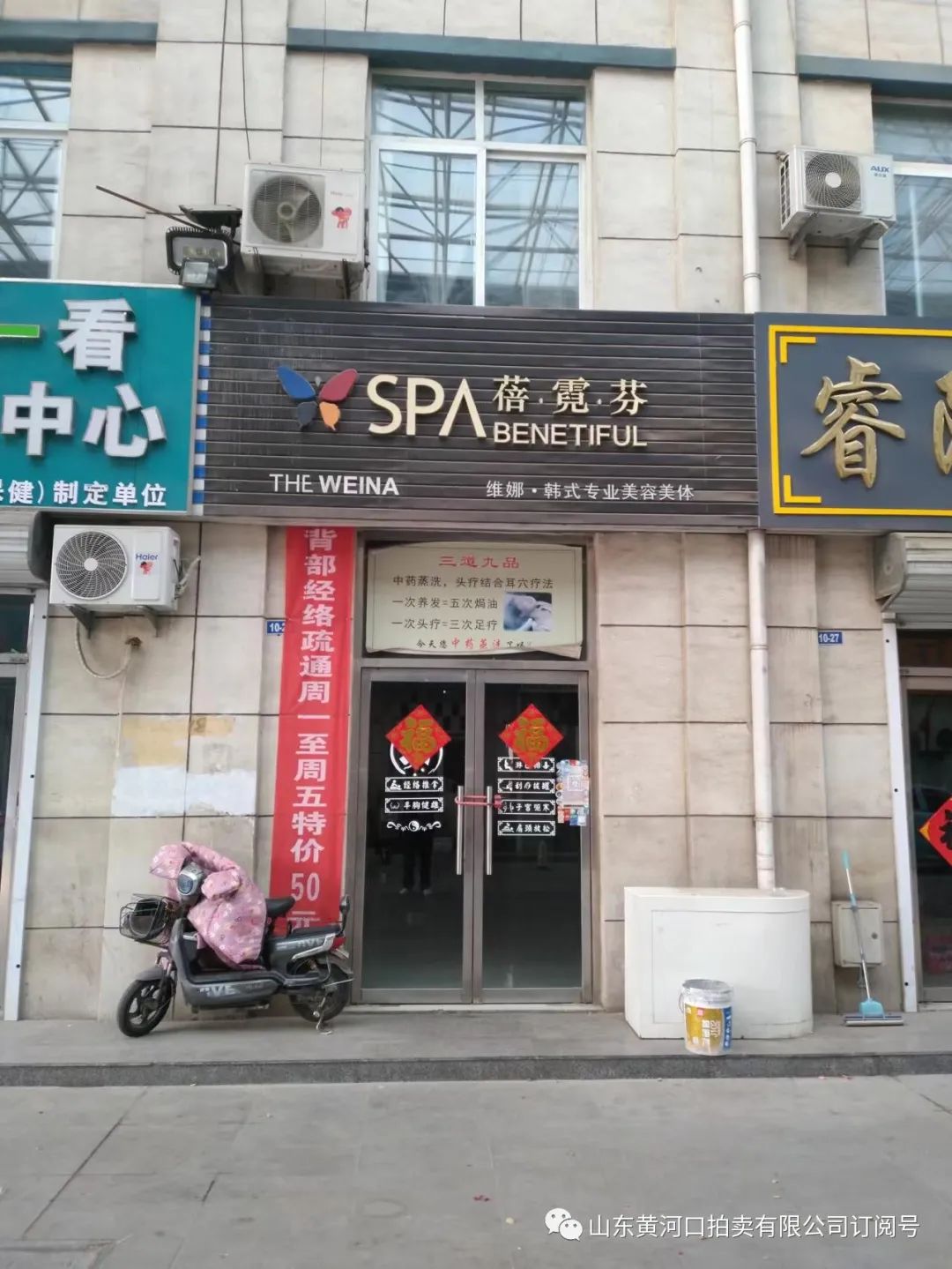 七、垦利区振兴路89号胜桥商业街9-13号商铺(现门头:超市)租赁权:面积166.14平米。参考价1.8万元/年,竞买保证金1万元。