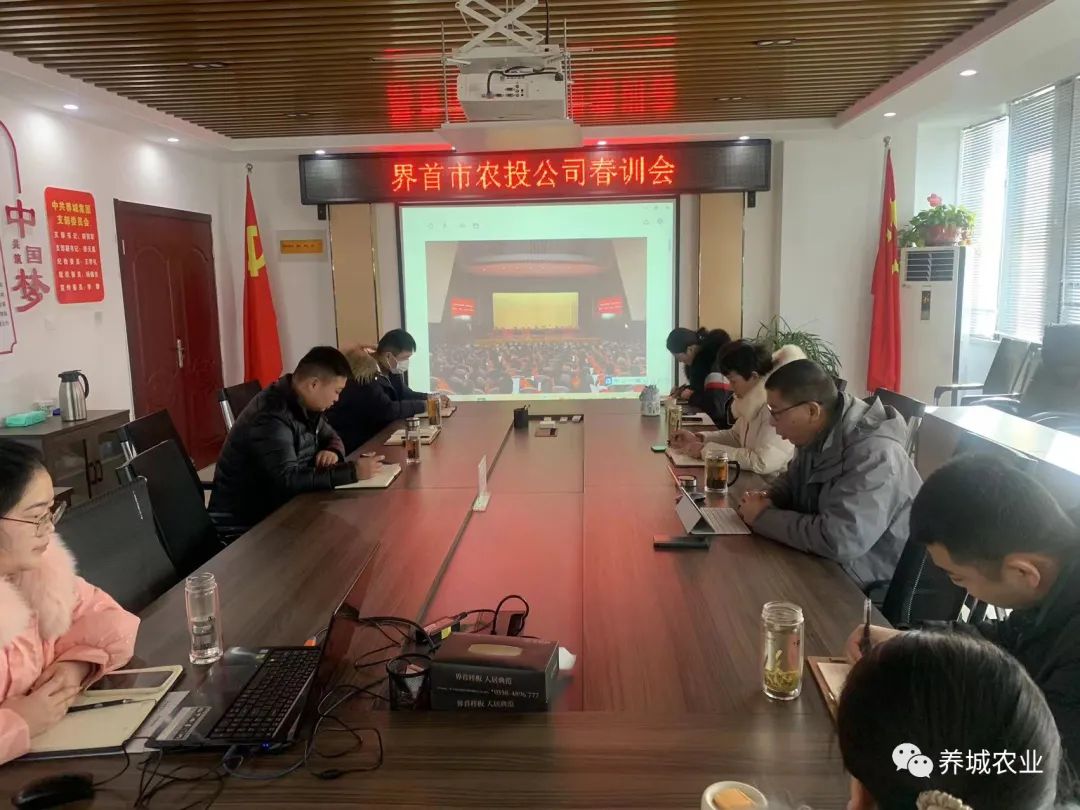 1月29日上午,界首农投公司召开春训会,学习安徽省新春第一会精神。