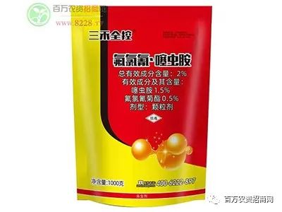 2、上防下杀,杀虫广谱,解决抗性害虫:解决老产品抗性,快速灭杀地老虎、金针虫、蛴糟、蝼姑、黑白地蛆、二点委夜蛾等地下害虫,兼防蚜虫、蓟马、粉虱等功效。